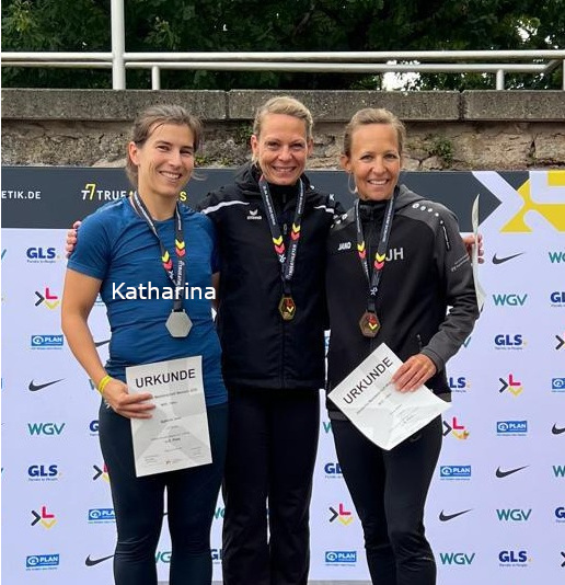 Dort krönte Katharina Jakob ihre bisher schon überragende Saison. Im 100m Finale der W35 lief sie in 12,99 Sek. auf den 2. Platz und wurde somit Deutsche Vizemeisterin im 100m Lauf.